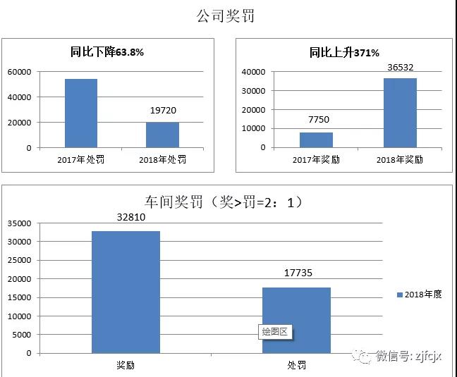 為了激勵員工時刻圍繞公司的核心價值觀,鼓勵員工奮發(fā)向上,促進(jìn)企業(yè)不斷完善改進(jìn),做到獎罰分明,堅持以獎勵/處罰=2:1原則,公司制定了《公司獎罰管理制度》和《車間獎罰管理辦法》,雙管齊下,2018年相比2017年獎勵金額同比上升371%,處罰金額同比下降63.8%,違章次數(shù)同比下降69.7%,管理上有了很大的提升,數(shù)據(jù)體現(xiàn)如下: