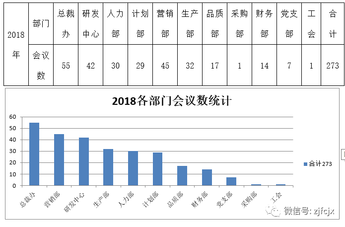 根據(jù)《公司會議管理制度》規(guī)定要求,各部門需用到公司會議室的會議需以《會議通知》的形式到總裁辦進(jìn)行登記,同時以《會議紀(jì)要》的形式到總裁辦進(jìn)行備案。經(jīng)2018年各部門到總裁辦會議數(shù)統(tǒng)計如下: